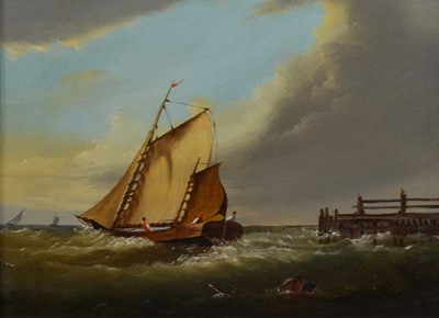 Dutch School, Trading ketch putting to sea, oil on board, unsigned, 16x22cm, another work by Geoffrey Herickx, Boats at low tide, oil on board, (Qty: 3) ... read more