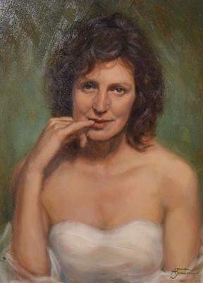 Amanda Jackson (Contemporary), Female portrait, oil on board, signed, 39x29cm.