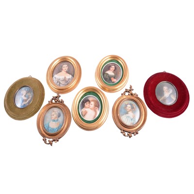 After Joseph Stieler, Anna Hillmayer, portrait miniature on German porcelain plaque, indistinctly signed, 9x7cm; together with another miniature on (Qty: 7) ... read more