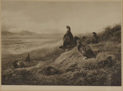 Archibald Thorburn, Red Grouse amongst the heather, engraving, signed in pencil, 35.5x50cm.